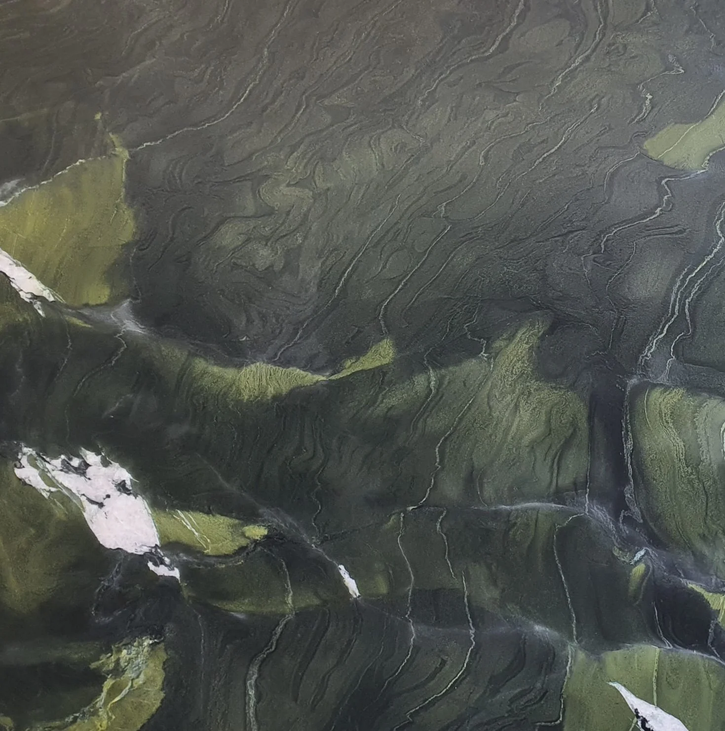 Le granit Avocatus, également appelé granit Avocado, est une pierre naturelle étonnante extraite au Brésil. Elle se caractérise par des tons verts profonds et des veines noires spectaculaires qui créent un effet luxueux et percutant.