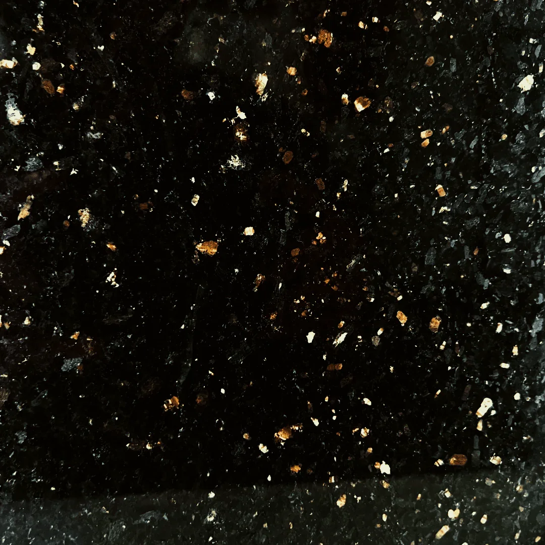 Granit noir d’Inde, parsemé de taches dorées évoquant une galaxie étoilée. Sa surface lisse et son toucher frais en font un choix luxueux et durable. Extrait dans des carrières d’Andhra Pradesh, il est idéal pour des designs modernes.