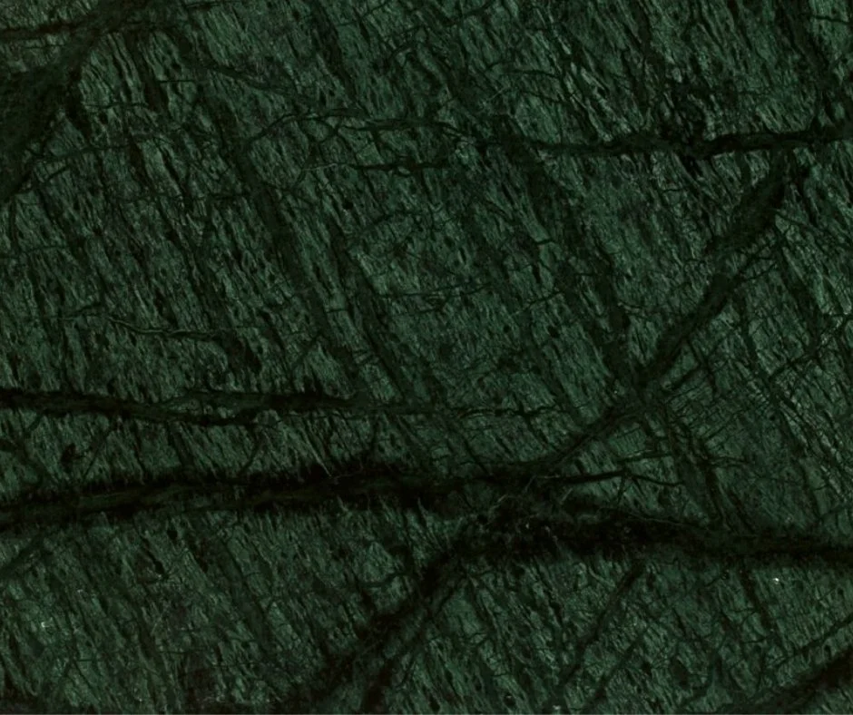 Marbre vert émeraude, orné de motifs serpentins et de veines blanches subtiles. Son toucher soyeux et sa teinte vibrante capturent l’essence de la jungle. Extrait en Inde et au Guatemala, il est idéal pour des designs exotiques.